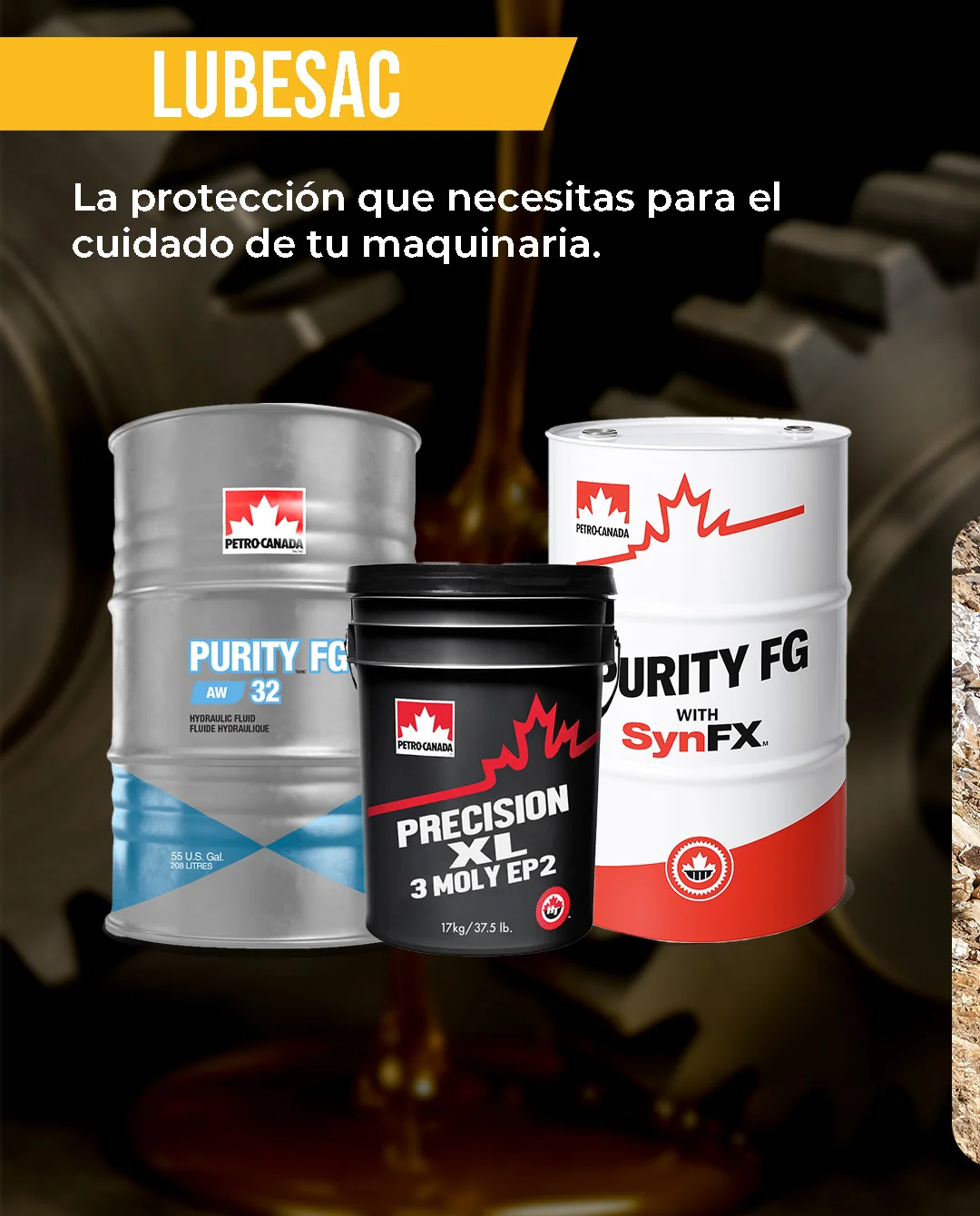Nuestro portafolio incluye grasas y aceites de ultima generacion, disenados para brindar maximo rendimiento y proteccion en condiciones exigentes, incluyendo productos sinteticos, semi-sinteticos, sanitarios y biodegradables.